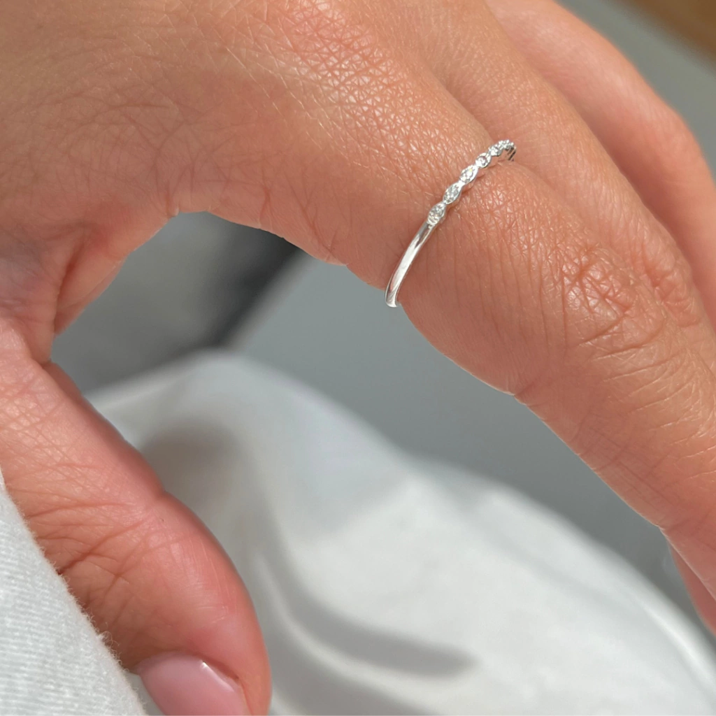 Este anillo de cubics, es diferente a los demas ya que solo tiene cubics en la parte del frente. Luego continua su diseño en plata lisa! Simulando una tiara.