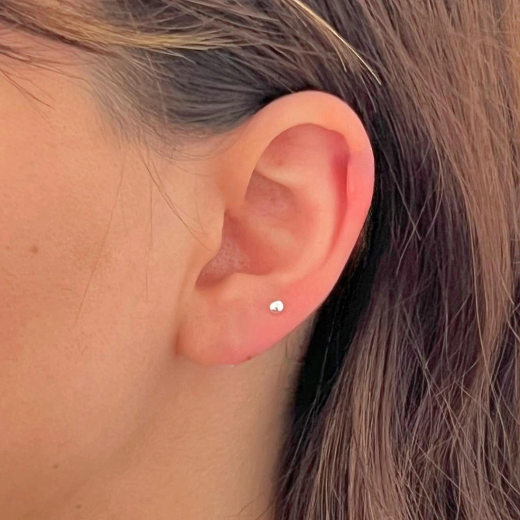 El Pasante Eric presenta un diseño clásico de media bolita de 3 mm, ideal para usar en el segundo/tercer agujerito, o como parte de un mix combinado. Fabricado en Plata 925, incluye cierre tipo mariposa.