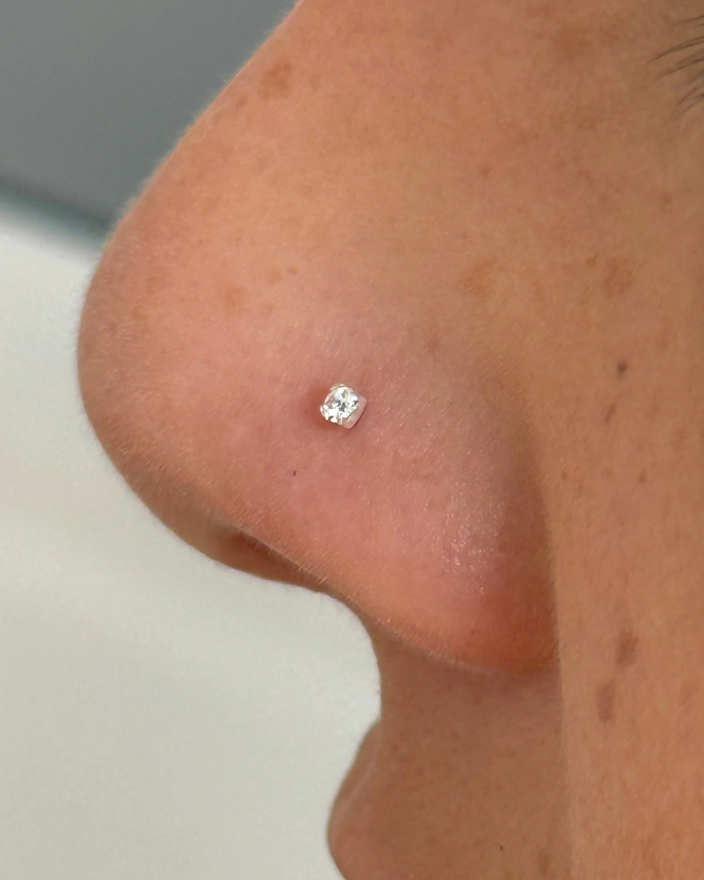 Piercing chiquito, delicado y súper cómodo, ideal para usar tanto en la nariz como en el tragus. Está hecho en plata 925, perfecta para el uso diario. Tiene un cubic que suma ese brillito justo para levantar cualquier look. El cierre con tope hace que sea fácil de colocar y que quede bien sujeto, sin molestias.