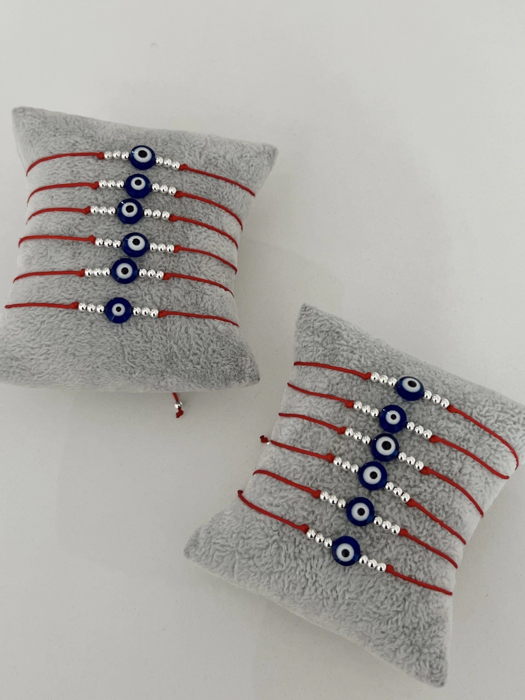 La Pulsera combina un hilo rojo con un ojito turco, símbolo ancestral de protección contra las energías negativas, con bolitas de plata 925 que le dan un toque de brillo y elegancia. Su diseño con cierre ajustable la hace cómoda y perfecta para adaptarse a cualquier muñeca, ideal para usar sola o acompañada de otras pulseras en tu mix favorito.